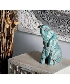 Grayson Lane 13-in x 7-in Vintage Sculpture Green Paper Mache Elephant