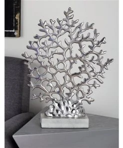 GRAYSON LANE 15 In. x 12 In. Coastal Sculpture Silver Marble Coral