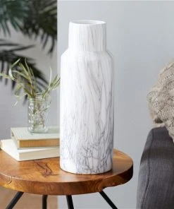 GRAYSON LANE 15 In. x 6 In. Contemporary Vase White Stoneware