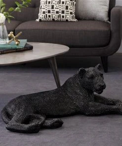 Grayson Lane 14-in x 39-in Glam Sculpture Black Polystone Leopard