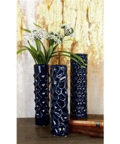 Grayson Lane 3-in x 12-in Contemporary Vase Dark Blue Stoneware – Set of 3