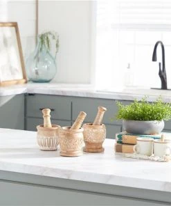Grayson Lane 3-Piece 7.7-in x 5.6-in Brown Classic Mortar and Pestle
