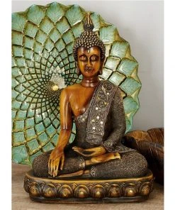 Grayson Lane Bohemian Sculpture – Brown Poly Stone Buddha – 31-in X 26-in