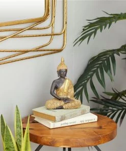 Grayson Lane Bohemian Buddha Sculpture – Brown Poly Stone – 15-in X 12-in
