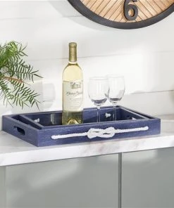 Grayson Lane Boho Style Tray – Brown Wood – 12-in X 15-in x 10-in