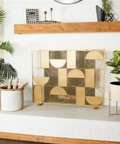 Grayson Lane Contemporary Fireplace Screen – Gold Metal – 32-in X 40-in