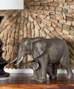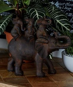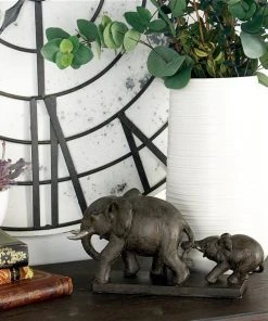 Grayson Lane Eclectic Elephant Sculpture – Brown Poly Stone – 10-in X 10-in