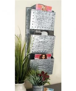 Grayson Lane Farmhouse Magazine Rack Holder – Grey Metal – 35-in X 15-in x 4-in