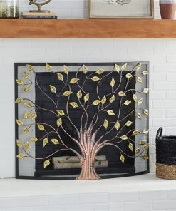 Grayson Lane Farmhouse Fireplace Screen – Green- Metal – 33-in X 39-in