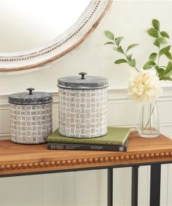 Grayson Lane Farmhouse Decorative Jar White Metal – Set of 2