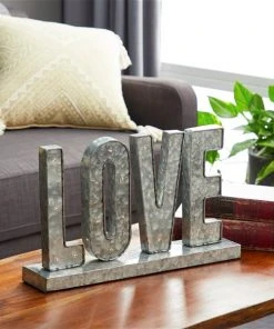 Grayson Lane Farmhouse Galvanized Iron Grey Love Decorative Sign with LED Lights