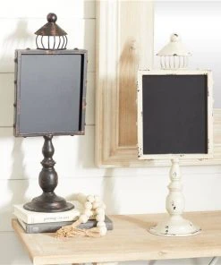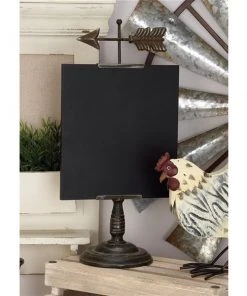 Grayson Lane Farmhouse Distressed Black Iron/Wood Chalkboard with Arrow Sign Tabletop Decoration