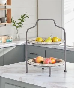 Grayson Lane Farmhouse Tiered Server – Grey Metal – 20-in X 16-in