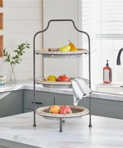 Grayson Lane Farmhouse Tiered Server – Grey Metal – 29-in X 16-in