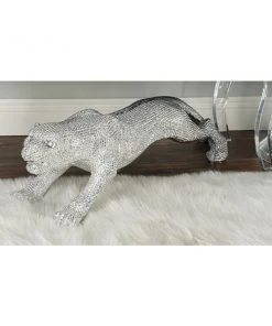 Grayson Lane Glam – Silver Poly Stone Leopard Sculpture – 11-in X 42-in