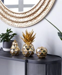 Grayson Lane Glam Fruit Sculpture – Gold Polystone – Set of 3