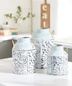 Grayson Lane Farmhouse White Metal Decorative Jar – Set of 2