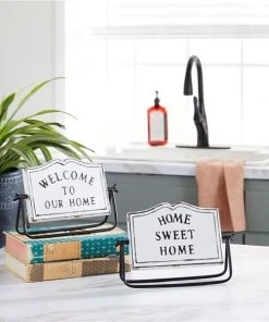 Grayson Lane Farmhouse White Iron Home Sign Tabletop Decoration – Set of 2