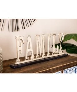 Grayson Lane Glam Silver Metal and Wood Family Sign Tabletop Decoration