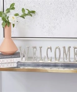 Grayson Lane Glam Silver Aluminum Welcome Sign Tabletop Decoration