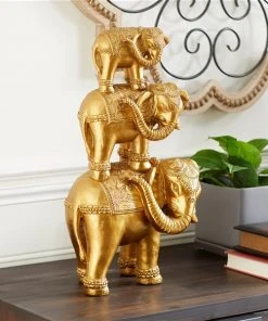 Grayson Lane 10-in x 8-in Contemporary Elephant Sculpture Gold Polystone