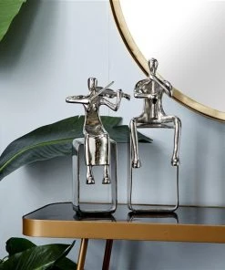 GRAYSON LANE Set of 2 12.5 In., 14.5 In. Silver Modern Musician Sculpture