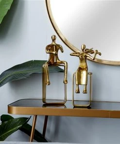GRAYSON LANE Set of 2 12.5 In., 14.5 In. Gold Modern Musician Sculpture A
