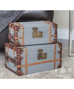 GRAYSON LANE Set of 2 12 In., 14 In. Grey Traditional Box Wood