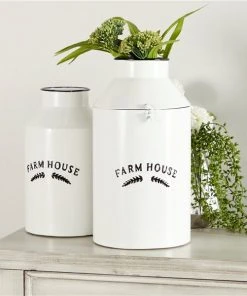 Grayson Lane Set of 2 14-in , 11-in Farmhouse Decorative Jar – White – Metal