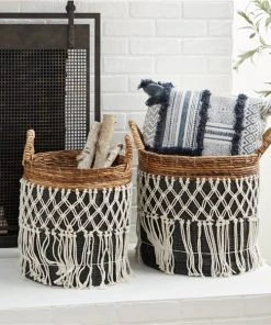 GRAYSON LANE Set of 2 19 In., 18 In. Bohemian Storage Basket Black Banana