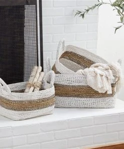 GRAYSON LANE Set of 2 19 In., 16 In. Coastal Storage Basket Brown Banana
