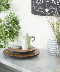 GRAYSON LANE Set of 2 2 In. x 12 In. Modern Lazy Susan Trays Brown Rubber