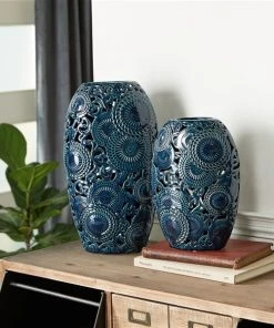 GRAYSON LANE Set of 2 18 In., 13 In. Eclectic Vase Blue Stoneware