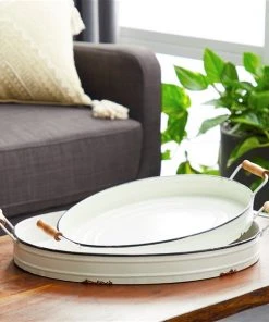 GRAYSON LANE Set of 2 18 In., 21 In. Farmhouse Tray White Metal