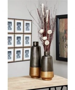 GRAYSON LANE Set of 2 18 In., 15 In. Contemporary Vase Bronze Metal