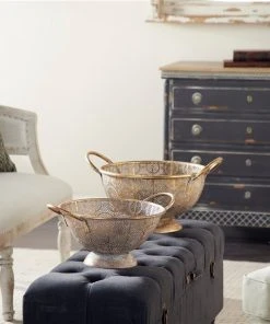 Grayson Lane Set of 2 21-in , 19-in Eclectic Decorative Bowl – Gold – Metal