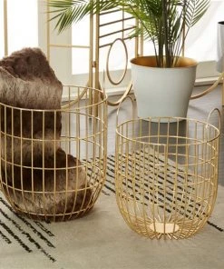Grayson Lane Set of 2 17-in x 11-in Contemporary Storage Baskets – Gold Iron