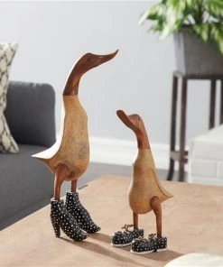 Grayson Lane Set of 2 17-in, 11-in Brown Coastal Duck Sculpture – Bamboo