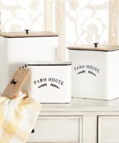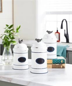 Grayson Lane Set of 3 11-in , 10-in , 8-in Farmhouse Canisters – White – Metal