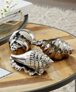Grayson Lane Silver Coastal Shell Sculpture Ceramic – Set of 3