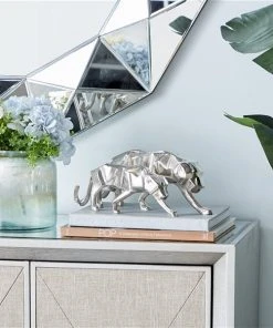 Grayson Lane Silver Contemporary Elephant Sculpture Porcelain – Set of 3