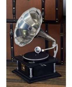 Grayson Lane Vintage Gramophone – Black Mango Wood – 26-in X 14-in
