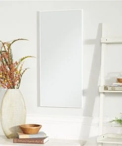 Grayson Lane 30-in x 14-in Rectangle White Contemporary Framed Wall Mirror