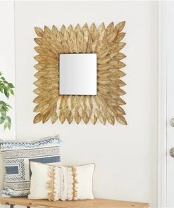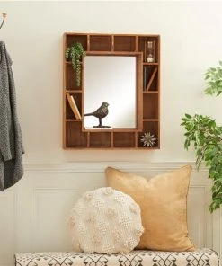 Grayson Lane 28.63-in x 23.75-in Rectangle Brown Wall Mirror