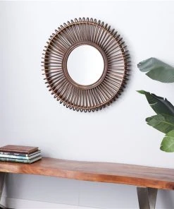 Grayson Lane 30-in x 30-in Round Brown Boho Framed Wall Mirror