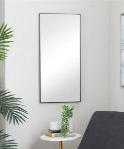 Grayson Lane 30-in x 14-in Rectangle Black Contemporary Framed Wall Mirror