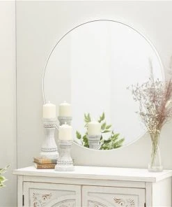 Grayson Lane 24.5-in L x 24.5-in W Round White Framed Wall Mirror