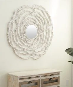 Grayson Lane 45-in L X 45-in W Coastal Round White Framed Wall Mirror