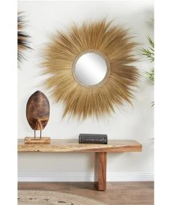 Grayson Lane 45-in x 45-in Round Brown Bohemian Framed Wall Mirror