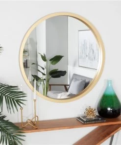Grayson Lane 43-in L X 20-in W Contemporary Round Gold Framed Wall Mirror
